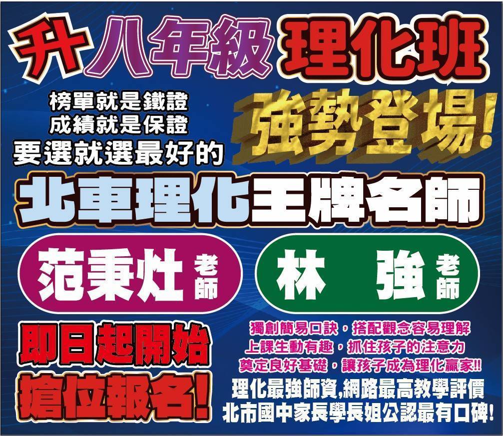 115【升八年級理化】作者: lee / 2025 年 2 月 5 日 🔍點我諮詢正式課程 🚀 【升八年級理化】強勢登場!🎯即日起搶位報名別讓理化成為孩子的挫折,選對老師就是成功的保證! 理化是國二新增的科目,也是許多學生感到最吃力的轉折點。我們用最強的師資與最有效的口訣,幫孩子搶先扎根。✨ 為什麼要選【張正數理】理化班?北車理化王牌名師 👨🏫 由 范秉灶 老師、 林強 老師親授,結合多年教學實戰經驗。獨創簡易口訣 💡 搭配容易理解的觀念引導,讓複雜的理化變得生動有趣。抓住孩子注意力 🎯 幽默風趣的教學風格,奠定良好基礎,讓孩子輕鬆成為理化贏家。北市家長公認口碑 👍 網路最高教學評價,是北市國中家長與學長姊公認最有口碑的選擇。報名狀態:即日起開始搶位報名! 介壽國中正對面介壽國中民生社區第一選擇介壽國中最強榜單在張正前三志願學長強力推薦老師小孩也來排隊搶位張正學子表現優異段考成績大放異彩